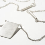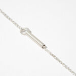 A delicate string gently embraces the back of the neck, connecting slender tubes that rest gracefully on the collarbone. At its center, a small, polished blank badge hangs, waiting to be filled with meaning. Blank symbolizes potential—a space yet to be defined, a story yet to be written. Worn as an invitation to create, this necklace offers its wearer a quiet reminder that life’s most precious moments are those we choose to shape ourselves.