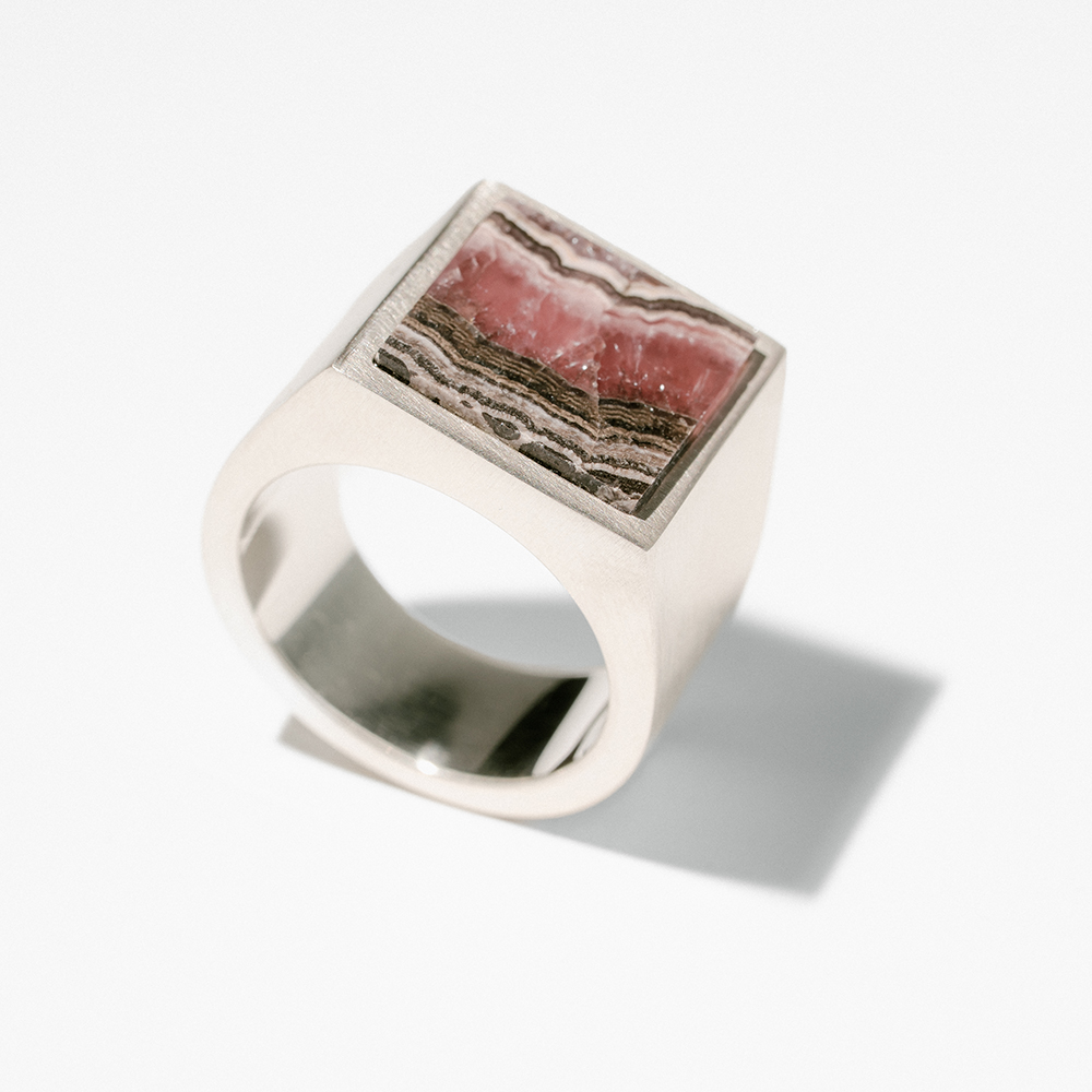 Graceful and magnetic, Fancy embodies the art of effortless allure — the kind that turns glances into gazes and moments into memories. Cast in recycled sterling silver and set with a pink rhodochrosite, it glows with the quiet strength of determination, commitment, and care. The polished curves catch light like laughter, while the gemstone’s tender blush whispers of warmth shared freely, and affection held true. Fancy is more than adornment; it’s a quiet celebration of charisma — clever, elegant, and irresistibly kind.