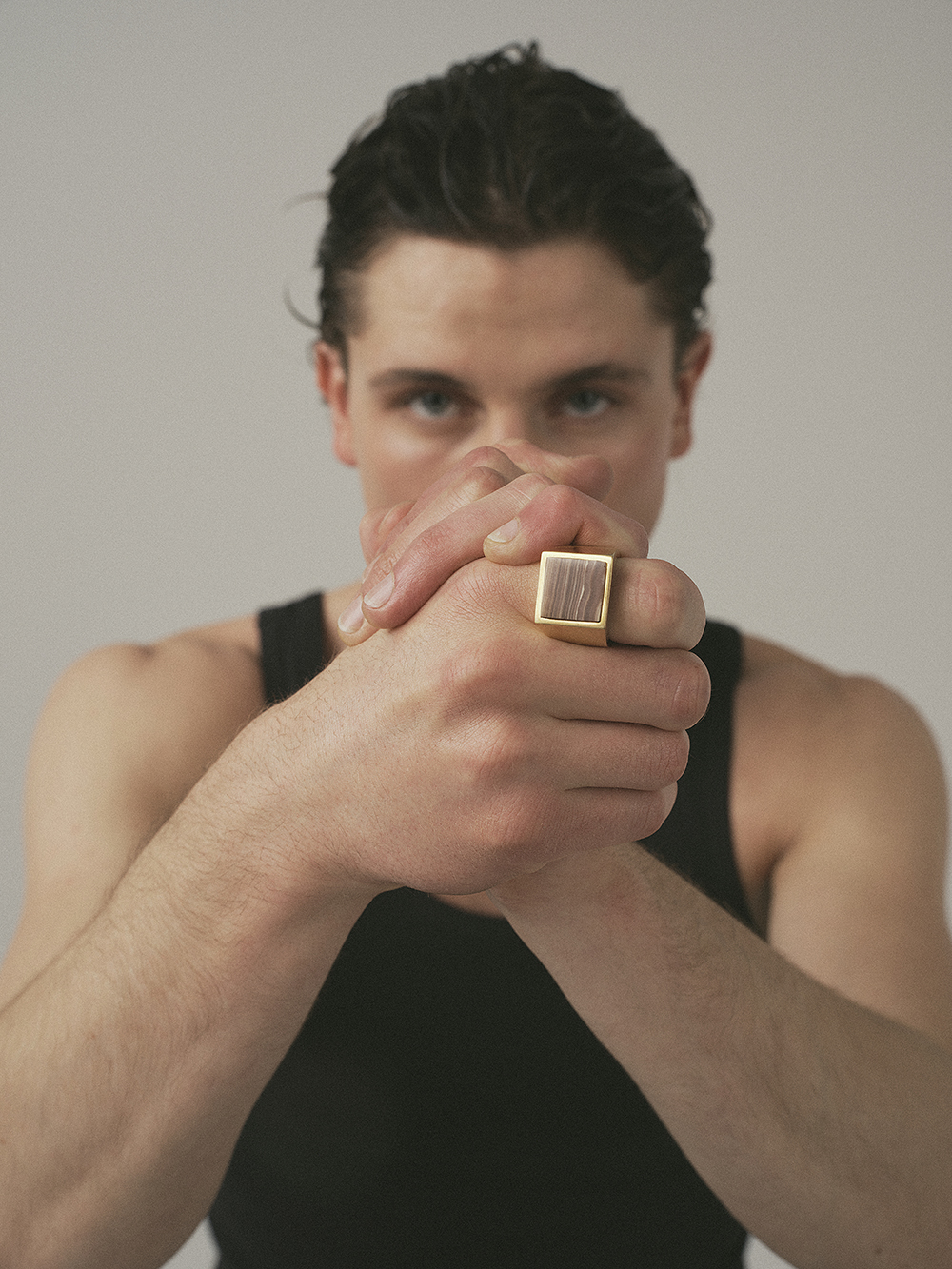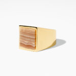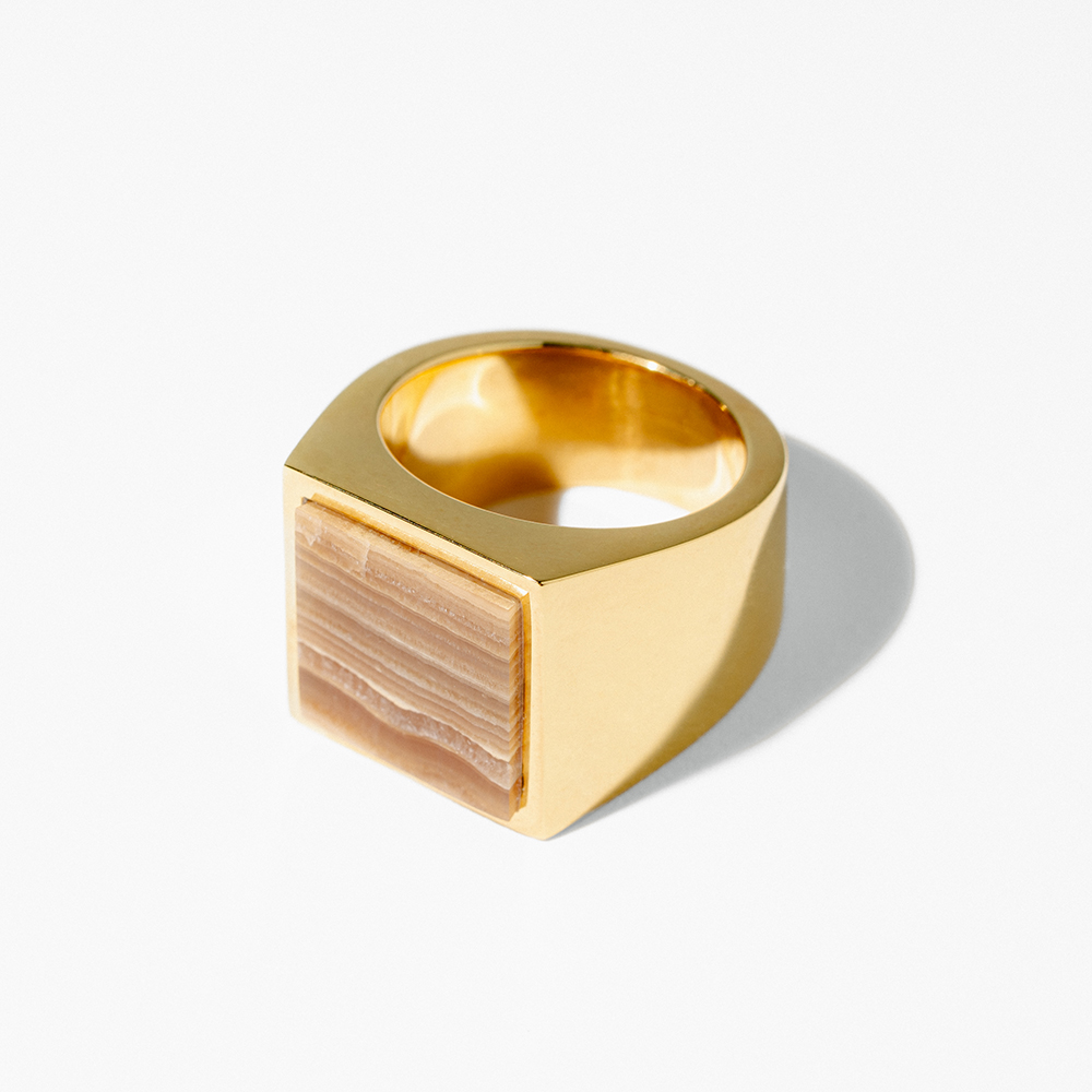 Playful and poised, Nifty captures the serene confidence of a mind at ease — one that sees the world with clarity, curiosity, and quiet joy. Cast in recycled sterling silver with a blush-pink rhodochrosite, or in gold-plated recycled sterling silver with a warm brown rhodochrosite, it reflects an elegance both grounded and free-spirited. The smooth surface and soft glow evoke the calm of inner balance, while the gemstone’s shifting hues whisper of laughter shared, and light gently caught. Worn in ease, Nifty is a reminder that wisdom need not weigh heavy — it can dance, it can smile, it can shine.