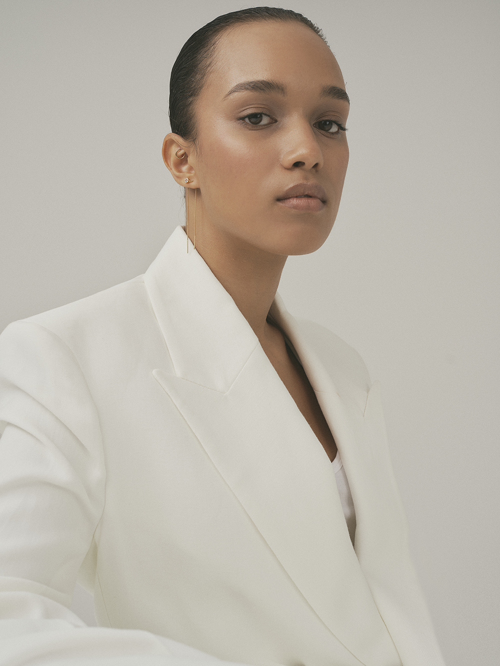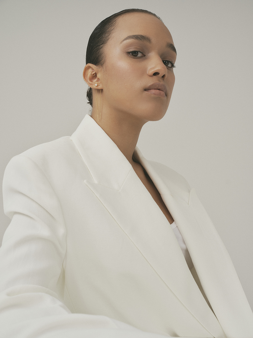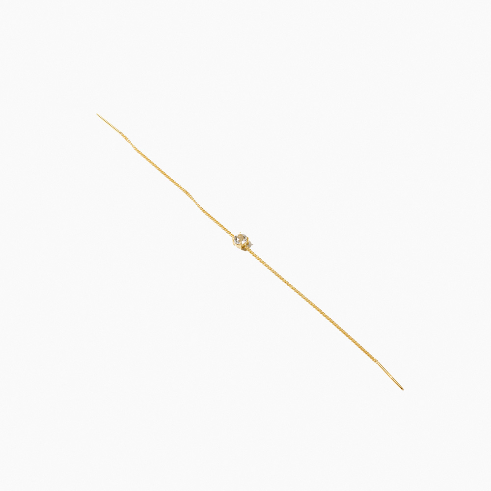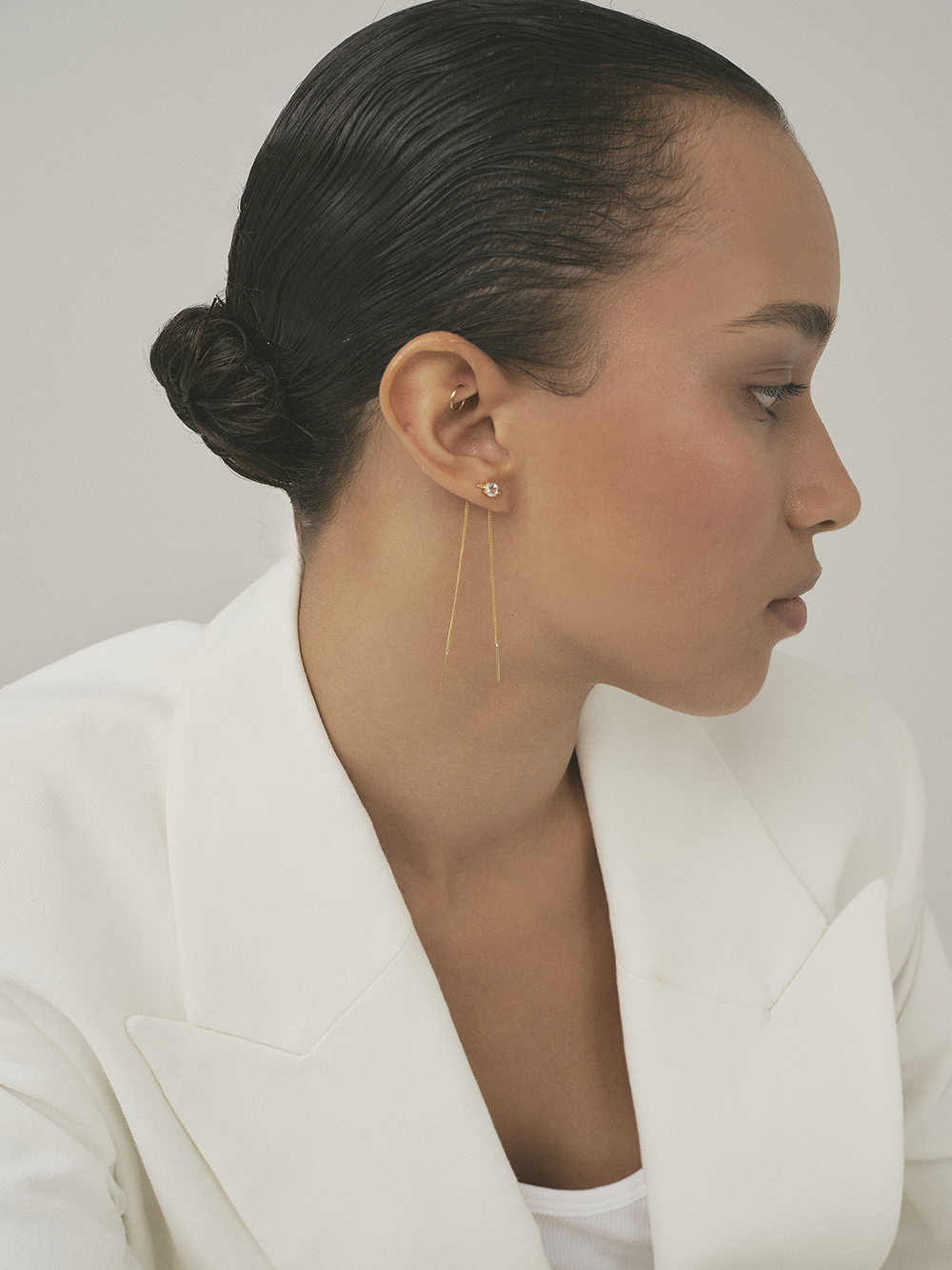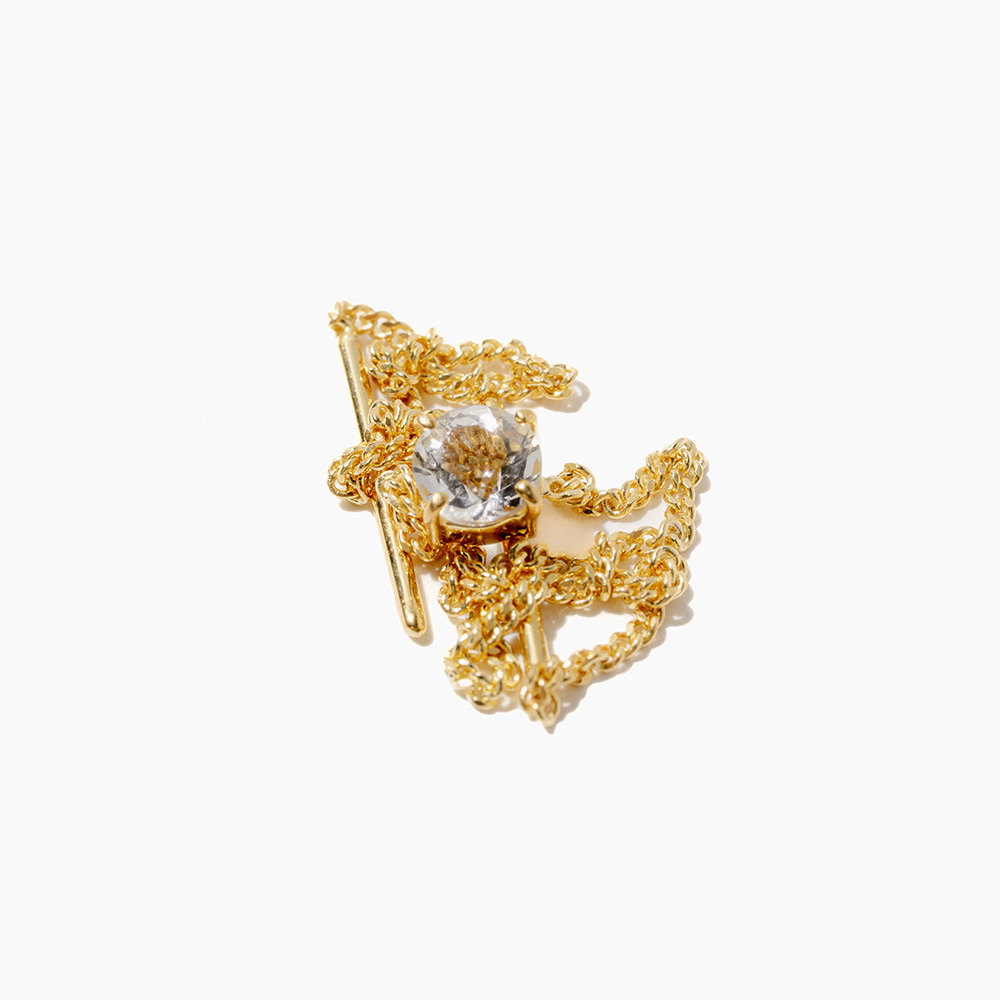Like a star caught on a delicate thread, Sparkler glimmers with playful radiance. A white topaz rests at its center, bright as starlight, held in a chain fine as woven air. Available in recycled sterling silver or gold-plated recycled sterling silver, it shines with particular magic when styled through two piercings, forming a constellation of light upon the ear. Sparkler embodies the joy of connection and the mischief of a shared glance, a luminous reminder that even the smallest sparkle can illuminate the spirit.