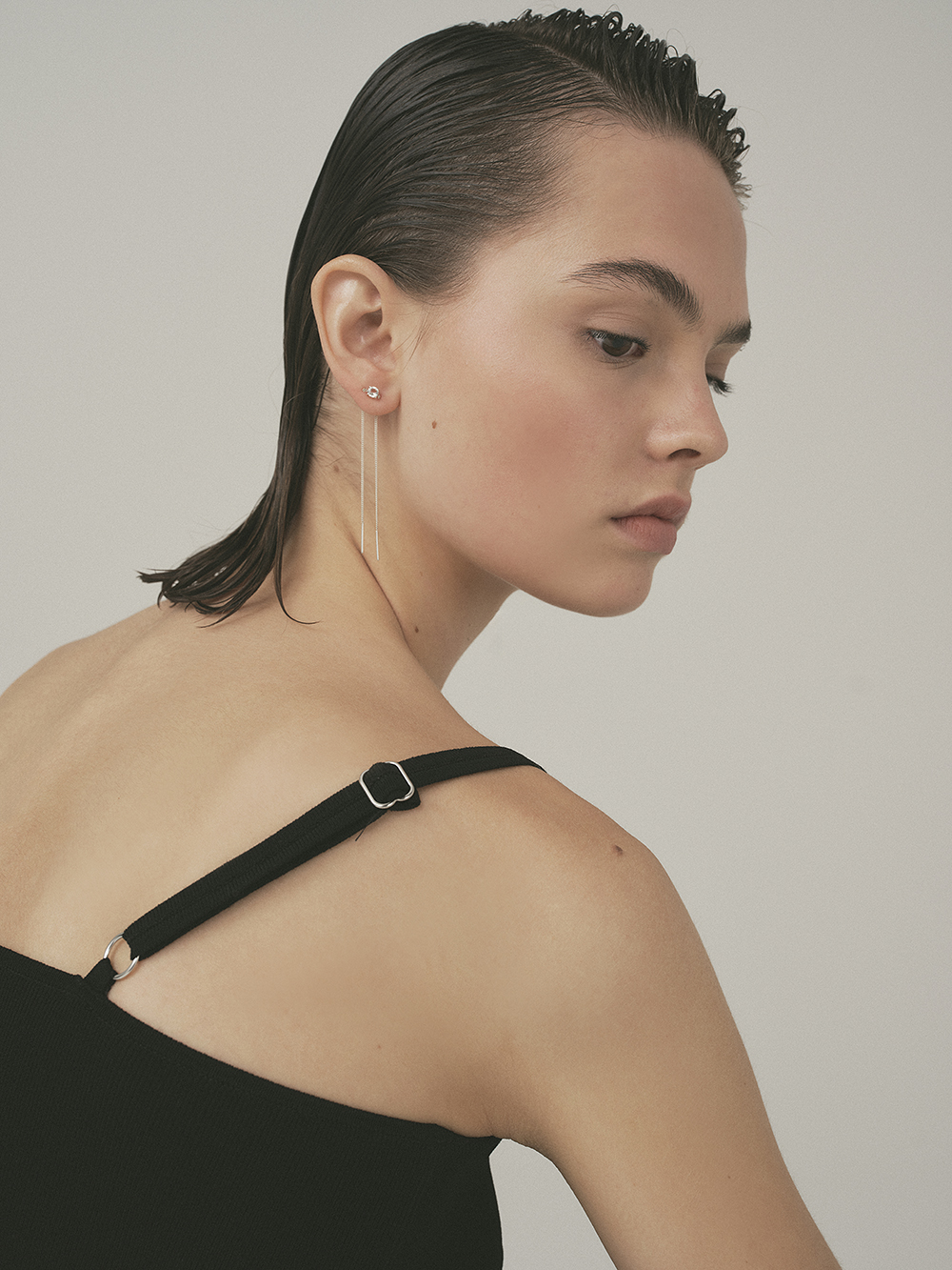 Like a star caught on a delicate thread, Sparkler glimmers with playful radiance. A white topaz rests at its center, bright as starlight, held in a chain fine as woven air. Available in recycled sterling silver or gold-plated recycled sterling silver, it shines with particular magic when styled through two piercings, forming a constellation of light upon the ear. Sparkler embodies the joy of connection and the mischief of a shared glance, a luminous reminder that even the smallest sparkle can illuminate the spirit.