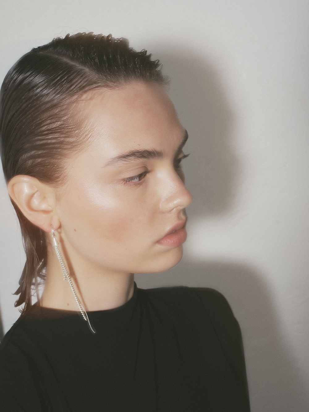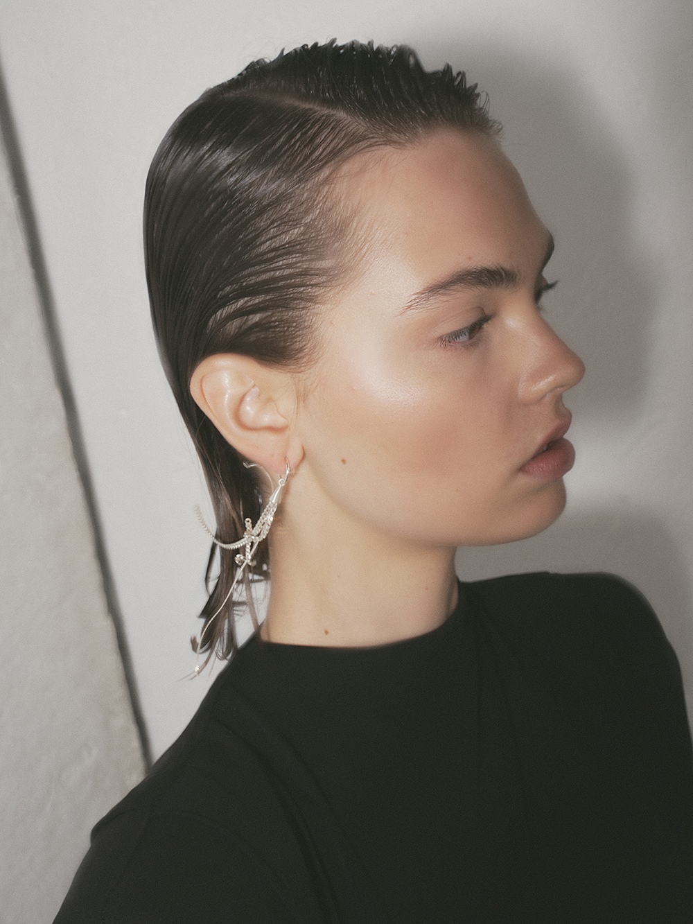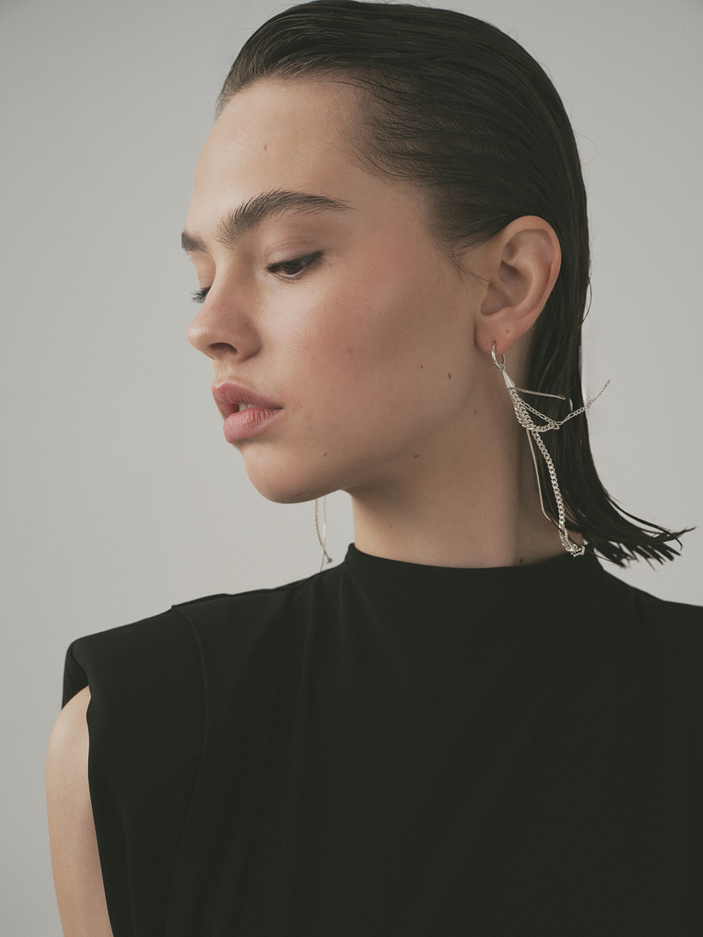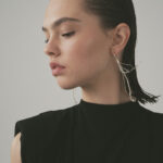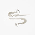 Formed from recycled sterling silver, each earring begins with a gleaming cone from which fine chains unfurl like rays of laughter, swaying and shimmering with every turn.